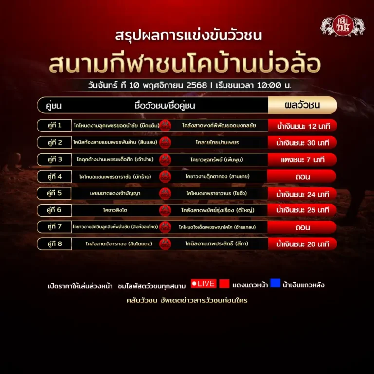 โคนิลท้องลายแชมเพชรพันล้าน (สิบแสน) VS โคลายไทยปานเพชร น้ำเงินชนะ 30 นาที