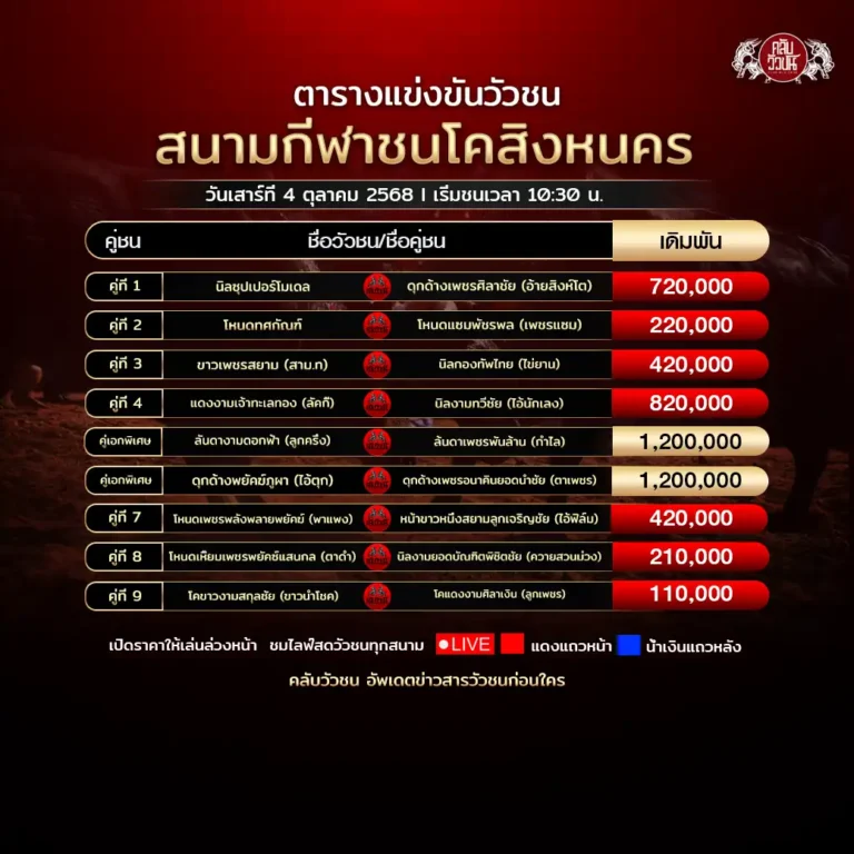 แดงงามเจ้าทะเลทอง (ลัคกี้) VS นิลงามทวีชัย (ไอ้นักเลง) ชิงรางวัล 820,000 บาท